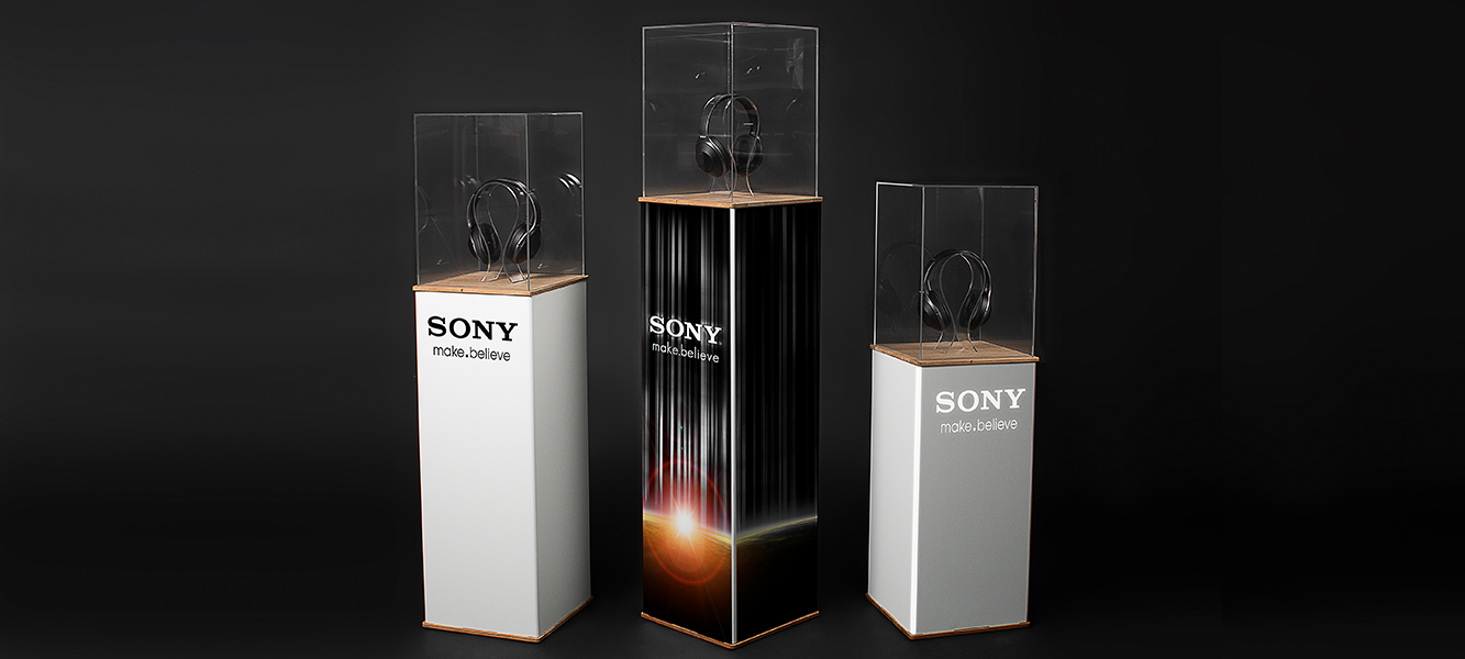 Die Präsentationssäule BLOX ist in 2 Grössen (30x30cm und 40x40cm) und 3 Höhen (60, 80 und 100cm) erhältlich.