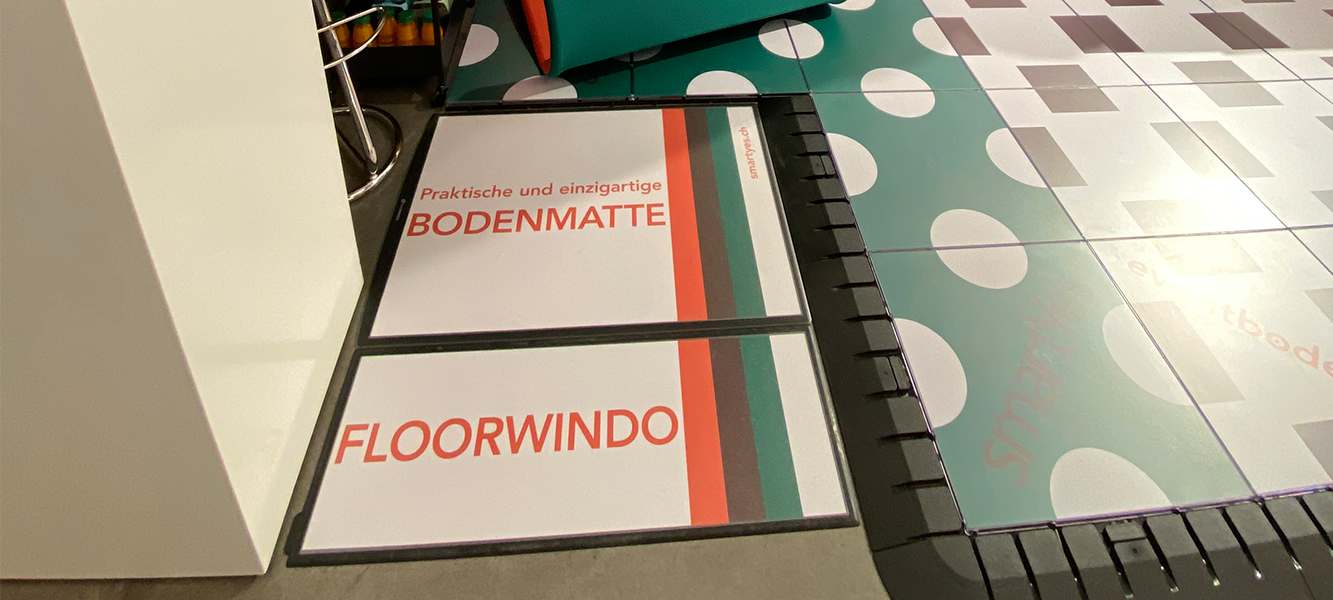 Die Bodenmatte FloorWindo ist ein praktisches und effektives Werbemittel, das Ihre Produkte, Angebote oder Markenbotschaften sichtbar präsentiert. Die Werbematte haftet sicher auf verschiedenen Untergründen wie Parkett, Fliesen, Teppich oder Vinyl und kann jederzeit schnell und mühelos neu positioniert werden. Die pflegeleichte Oberfläche schützt Ihre Poster, die Sie bei Bedarf einfach wechseln können.