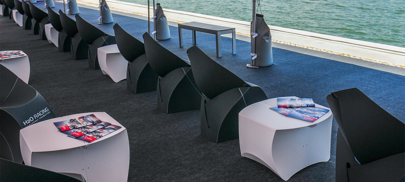 Faltbare Eventmöbel sind die ideale Lösung für Veranstaltungen jeder Art. Sie lassen sich schnell auf- und abbauen, einfach transportieren und platzsparend lagern. Sie bieten ein modernes Design und hohe Stabilität. Die faltbaren Möbel FLUX sind sowohl für den Innen- als auch für den Aussenbereich geeignet. Wetterfestes Material sorgt dafür, dass auch Outdoor-Events stilvoll und komfortabel ausgestattet werden können.