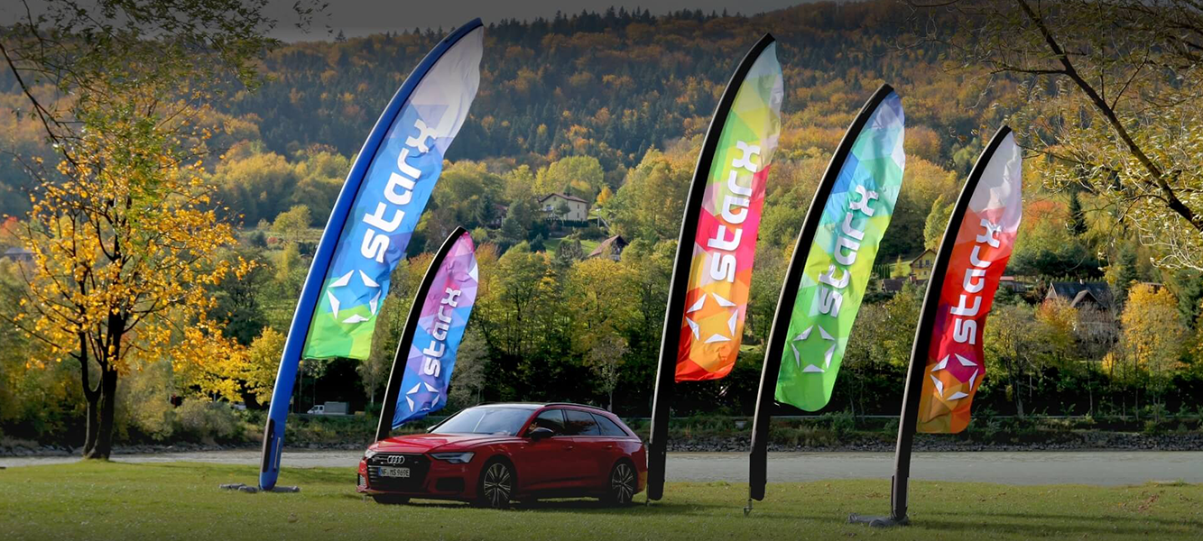 Die Starx Werbefahne ist komplett individuell bedruckbar, auffällig, benutzerfreundlich und bietet die Möglichkeit den Fahnenstoff schnell und einfach dank einem Reissverschluss zu wechseln. Die Eventfahne ist in mehreren Grössen bis zu einer Höhe von 8 Metern und mit passendem Zubehör für jede Oberfläche erhältlich.